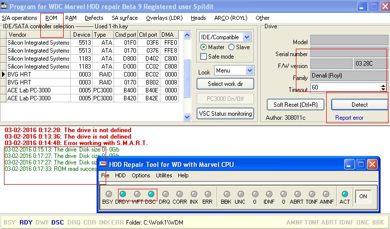 If i detect the PCB only with WDMarvel (on my HRT card) i only get DRQ. Because the PCB is NOT READY i can't detect it neither soft-reset it and all that i get is the message saying "the drive is not defined".